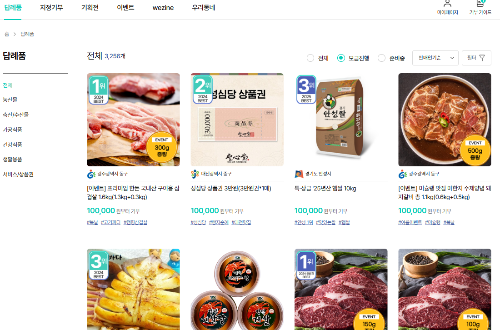 - 지역 농·축·수산물 (한우, 고구마, 쌀, 문어 등)